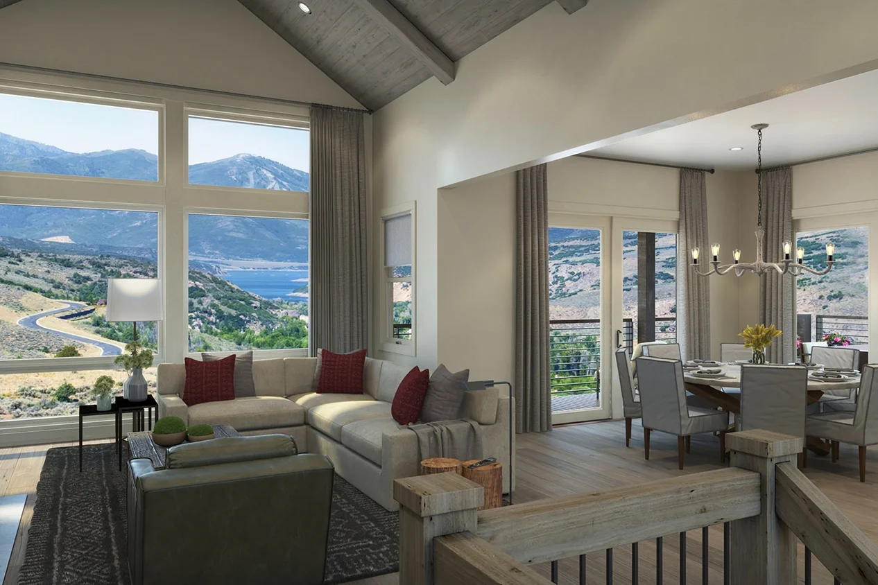 With an abundance of glazing and decking that offer spectacular views of the surrounding mountains, this Victory Ranch model seamlessly mixes traditional and modern design.